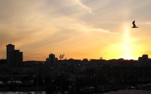 Im Westen endet die Stadt recht abrupt am Monte de San Pedro. Einen letzten Außenposten bildet die Aussichtsplattform oben auf dem Felsen, die von der Uferstraße über einen Fahrstuhl in Form einer Glaskugel zu erreichen ist (eine Fahrt: drei Euro). Der Bürgersteig wandelt sich hier in einen Fußweg, der von der Klippe hinunter ans Wasser führt und mit der Aussicht lockt, am Ende des Hügels freien Blick auf den Atlantik zu haben.